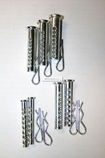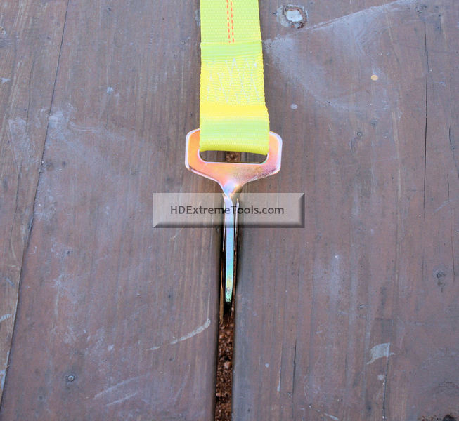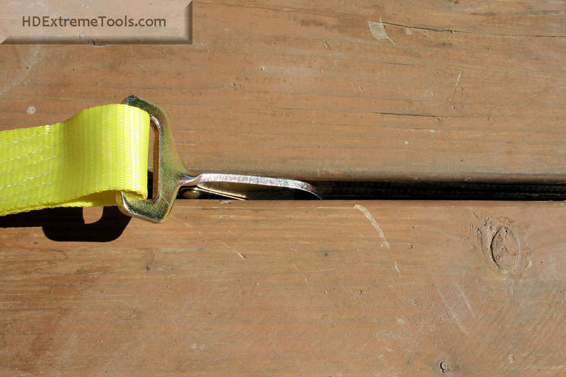 - Thin hooks to fit between trailer boards for quick tie down of equipment,